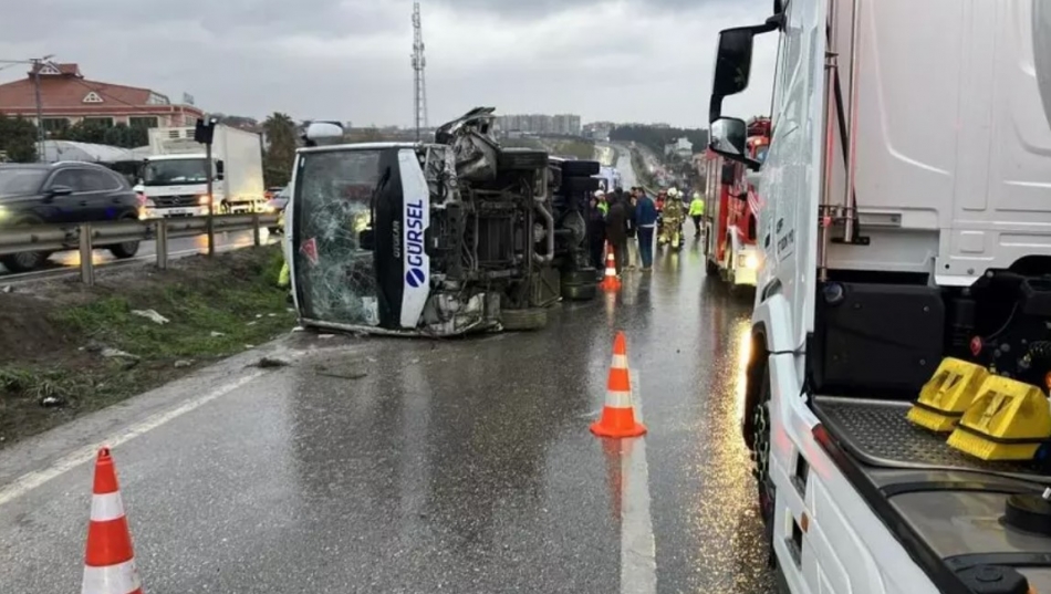 Büyükçekmece'de işçi servisi devrildi: 1 ölü, 9 yaralı Büyükçekmece'de E-5 karayolunda yağmur nedeniyle kayganlaşan yolda işçileri taşıyan servis minibüsü devrildi. Kazada 1 hayatını kaybetti, 9 kişi yaralandı. Kaza anı güvenlik kamerasına yansıdı.Kaza, akşam saatlerinde E-5 Büyükçekmece Güzelce mevki Beylikdüzü istikametinde meydana geldi. Edinilen bilgiye göre, Beylikdüzü istikametine seyir halinde olan servis minibüsü sürücüsü, yağış nedeniyle kayganlaşan yolda, direksiyon hakimiyetini kaybetti. Temizlik personelini taşıyan araç kontrolden çıkarak devrildi. İhbar üzerine polis, jandarma, itfaiye ve sağlık ekipleri sevk edildi. Kazada 1'i ağır toplam 10 kişi yaralandı. Yaralılar ilk müdahalenin ardından ambulanslarla çevredeki hastanelere kaldırıldı.İŞÇİ SERVİSİ DEVRİLDİ, 1 KİŞİ HAYATINI KAYBETTİ Durumu ağır yaralı olan Recep Berkan Hodlioğlu (26), yapılan tüm müdahalelere rağmen kurtarılamayarak hayatını kaybetti. Tedavisi devam eden diğer yaralıların durumunun iyi olduğu öğrenildi. Kaza nedeniyle ana yol kapanırken, trafik yan yoldan sağlandığı öğrenildi. Kaza anı güvenlik kamerası tarafından kaydedildi.KAZAYLA İLGİLİ AÇIKLAMA GELDİ Öte yandan İstanbul İl Sağlık Müdürü Abdullah Emre Güner, kazaya ilişkin açıklama yaptı. Güner, "İstanbul Büyükçekmece D-100 Karayolu Bahçelievler Mahallesi'nde meydana gelen servis aracı kazası sonrası olay yerine 112 Acil Sağlık ekiplerimiz hızla sevk edilmiştir. Kazada 1 vatandaşımız hayatını kaybetmiş, 9 vatandaşımız yaralanmıştır. Yaralılarımızın olay yerinde yapılan ilk müdahalelerinin ardından hastanelere sevkleri sağlanmıştır. Tedavi altına alınan 9 yaralımızın genel durumları iyi olup, süreçleri yakından takip edilmektedir. Hayatını kaybeden vatandaşımıza Allah'tan rahmet, yakınlarına başsağlığı, yaralılarımıza acil şifalar diliyorum" ifadelerini kullandı.